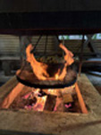 Töpfen auf dem offenen Feuer in der Grillhütte.